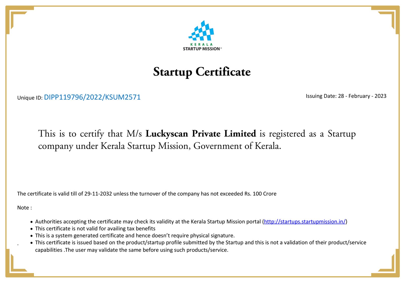 LuckyScan Pvt Ltd registered. Aligned with Startup India & KSUM.